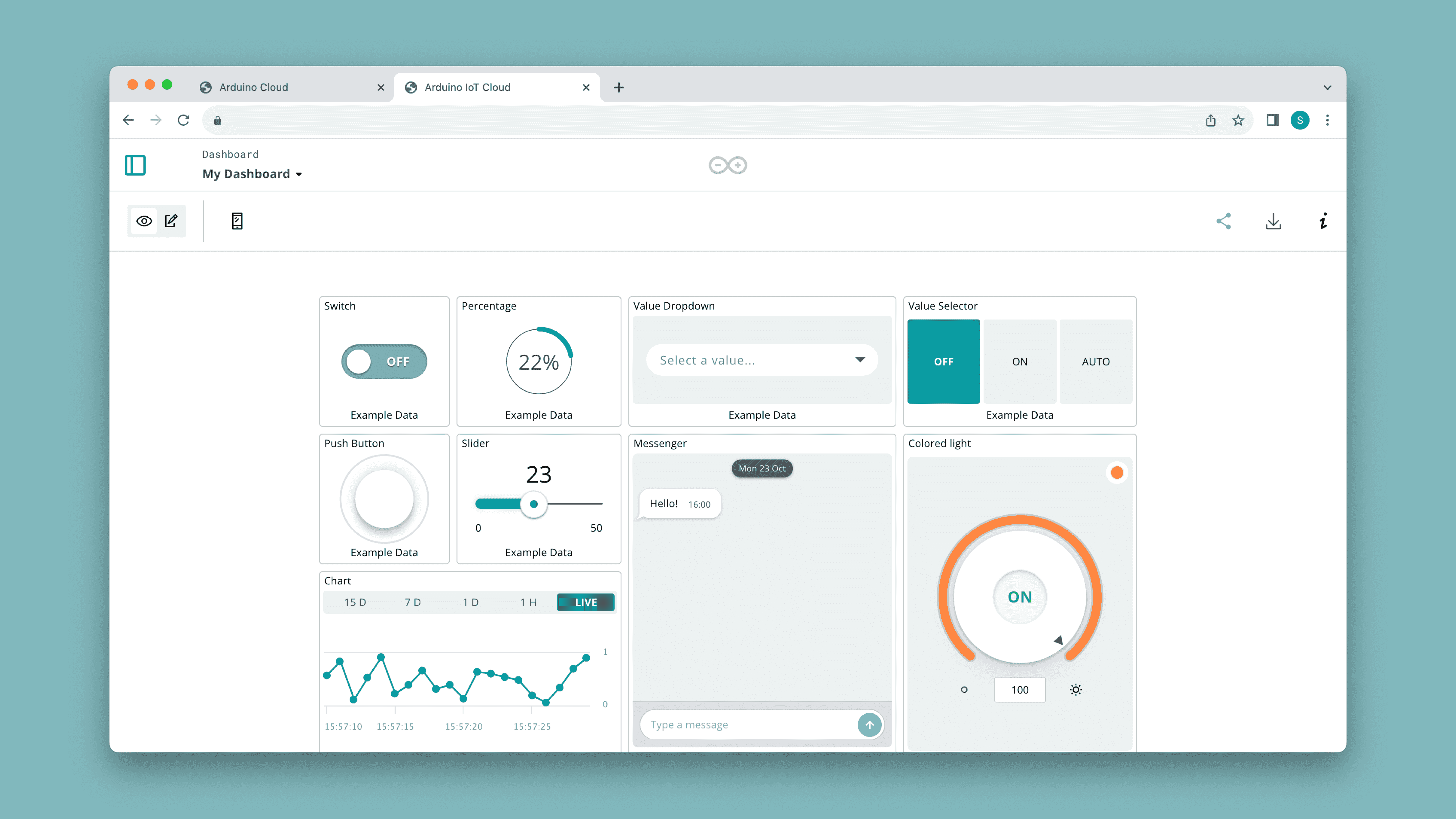 Dashboards are used to visualize real-time data and to enable direct interaction with the board through the Cloud.