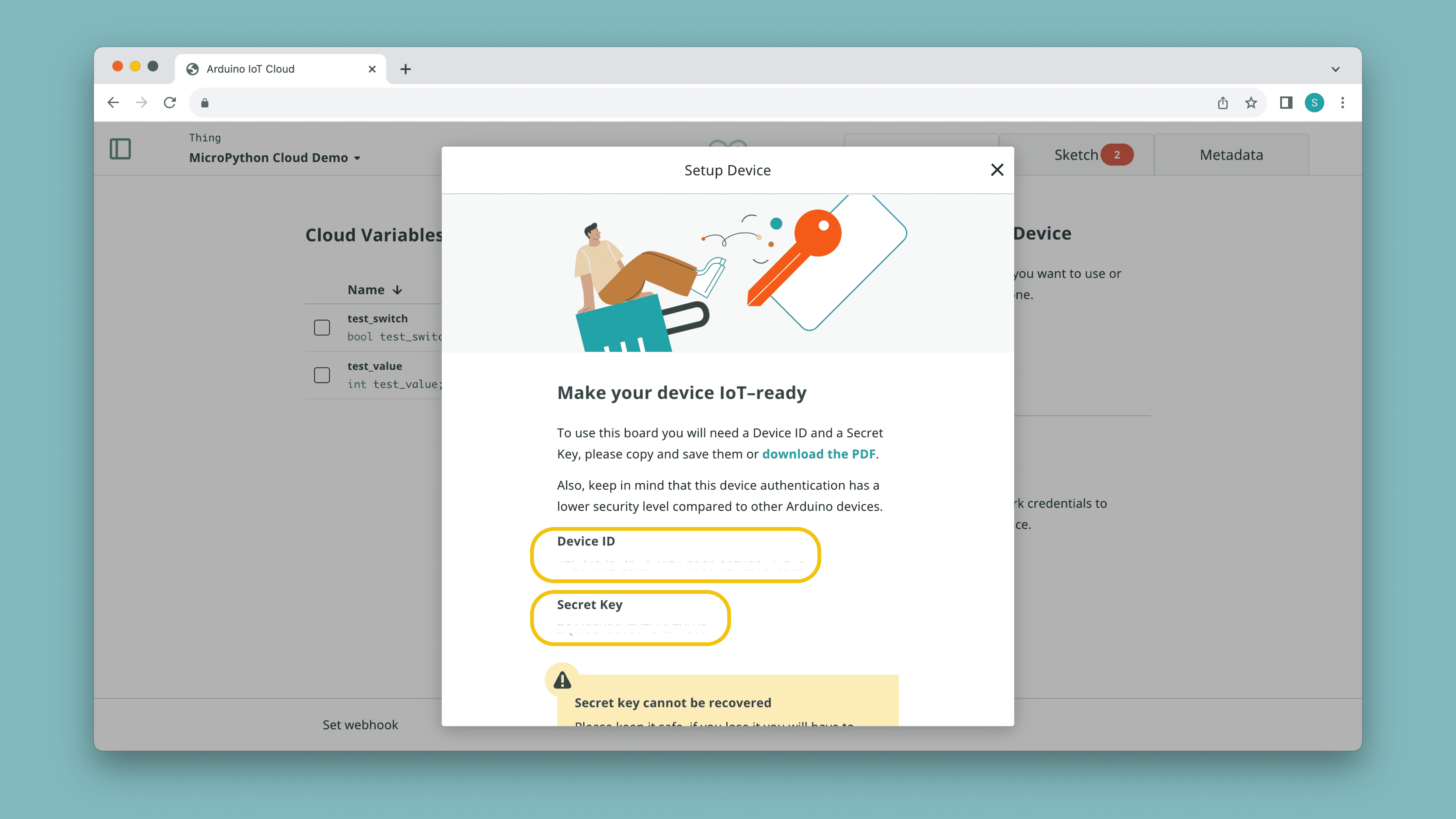 We are now finished with the Arduino Cloud configuration, and we can proceed with the MicroPython setup.