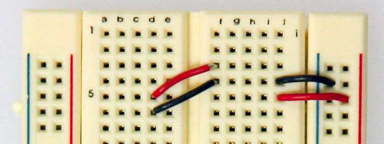 With the breadboard you prepared above, add two wires for power and ground for your AVR programmer.
