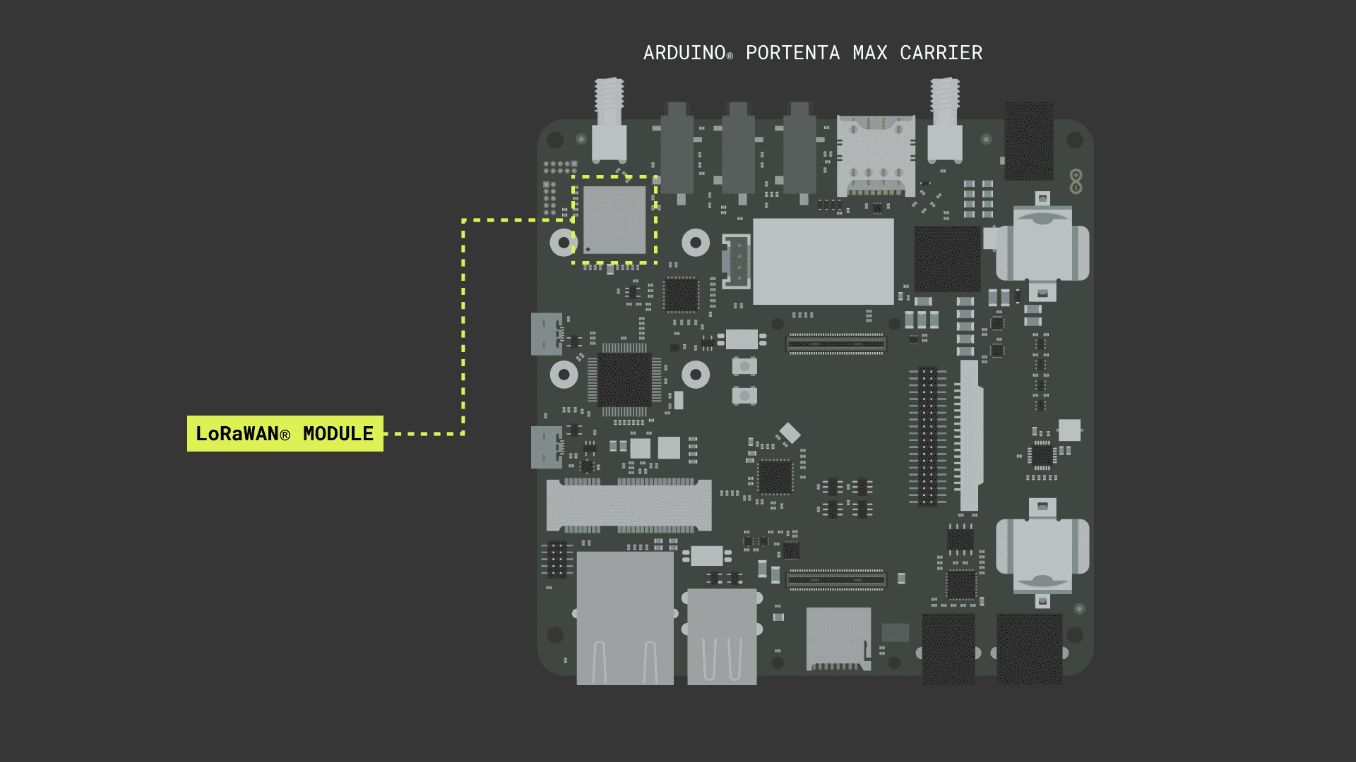 The Arduino® Portenta Max Carrier LoRaWAN® Module